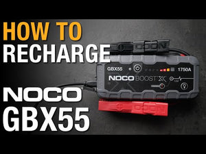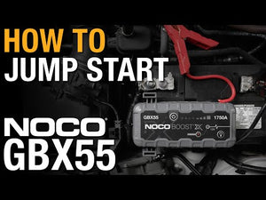 NOCO Boost X GBX55 is a portable lithium jump starter for 12-volt batteries in vehicles up to 7.5-litre petrol and 5.0-litre diesel engines, including motorcycles, cars, trucks, ATVs, boats, RVs, vans, SUVs, tractors, and more.- An all-new design with extreme jump starting power for powerful engine starts. Rated at 1750-amps, this portable lithium motorcycle and car battery jump starter releases maximum energy at every start. This isn't an upgrade. It's a whole new series - the Extreme Series.
